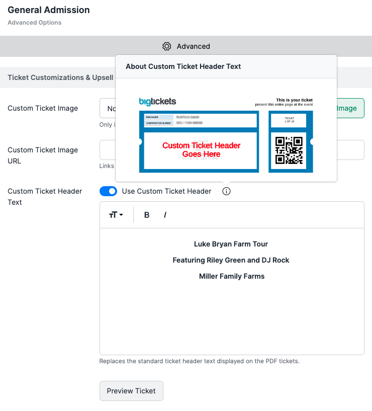 Make your tickets stand out! With our latest feature, you can now customize the header text displayed on your PDF tickets.