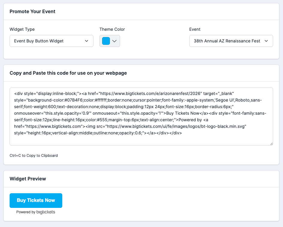 Generate an embeddable Buy Tickets button with just a few clicks.